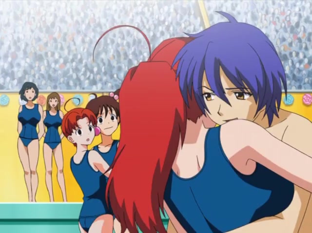 Club Eiken, by the way, is one of the best quality and most corrosive anime parodies out there. The unnaturally huge boobs for Japanese women, which in the rest of the anime are presented as a matter of course, are shown here as really HUGE and unnatural. What else do we have? A gorgeous Kiriko-san, a parody of the ubiquitous gluttonous tsundere. She is shown exactly as they should be, for being so gluttonous - fat! Just look at how terrifying her thighs look over her socks. Next comes the gorgeous bisenan, who turns out to be bald (can't remember his name). The pathos in his speeches, common to these kinds of characters, is mocked just fine. As he said, "your hair is like a flock of sheep climbing a mountain, your eyes are like a pair of doves hiding behind the curtains of the century..." or something like that. This is ridiculous! And the movement with which he took off his jacket to slip it over Chiharu's shoulders? That alone clearly shows that this anime is pure banter. In the first episode, there is a girl with a huge boob, a genius girl with huge tits, a teacher that no one notices, Chiharu, her sister and all the rest - a stereotype of similar stereotypical characters. Special mention should be made of the episode where, in slow motion, the hentai music unmasked everyone - mocking similar situations in the anime when, all of a sudden, heroines' bras are torn, or their skirts are pulled up, or something else. And the race in the yogurt - an obvious ironic allusion to the hentai, where the heroine is covered from head to toe with ummmm... some white substance )). And, as noted above - for all tastes: tentacles, BDSM, handmaidens, fairy girls, loli, dominant females and so on.