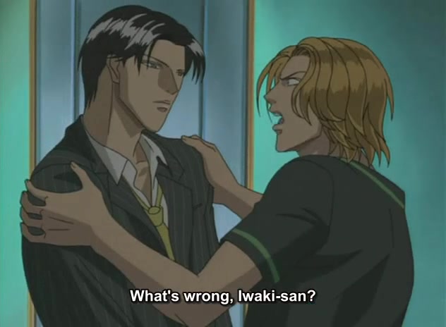 Iwaki is upset: Kato is younger than him, prettier, more outgoing with the press and therefore more popular, in general a bright personality in every way. Besides, working as a porn actor is more of a stigma for Iwaki than something worthy. He informs Kato about all this by inviting him to his house for a serious talk.