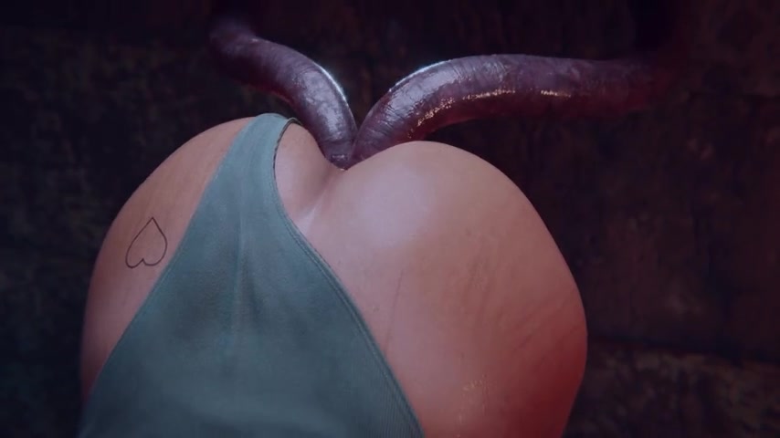 Lara finds herself in a corridor with tentacles wrapped around her holding her up in the air. They then begin their attack! The bottom of Lara's leotard has been pushed to the side already then the first tentacle makes it move, it slowly inches it ways across her ass & until it reaches her asshole. It gives her no warm up, it goes right in penetrating her tight asshole. Another tentacle reaches up & starts playing & fondling her nipple. Now two tentacles are fucking her ass at the same time their slimey phallic shaped tentacles sliding in & out of her ass which which is leaking cum as it slowly drips down in between pussy lips.
