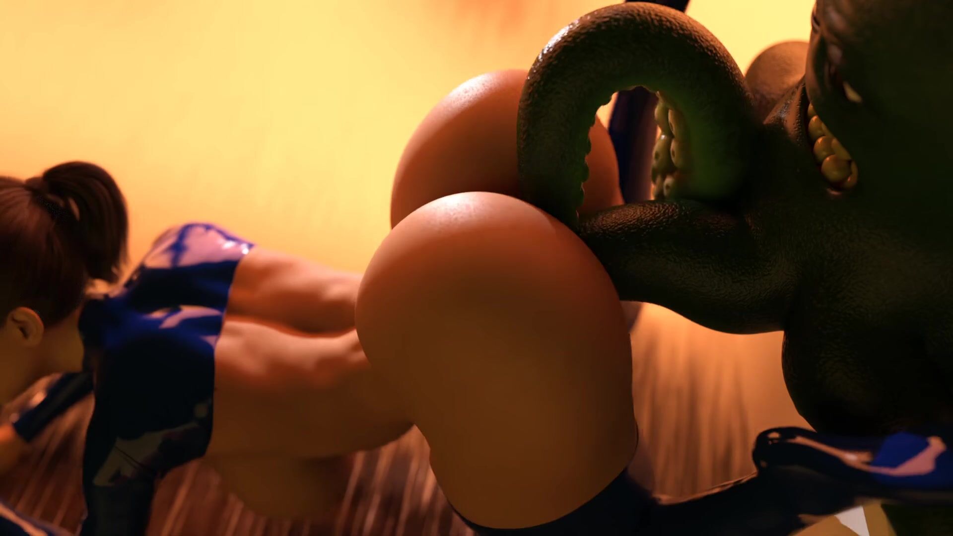An alien fucks Rebecca with tentacles as she's tied up in the air while her two daughters, Eva & Enigma, both on all fours get double penetrated doggystyle by tentacles.