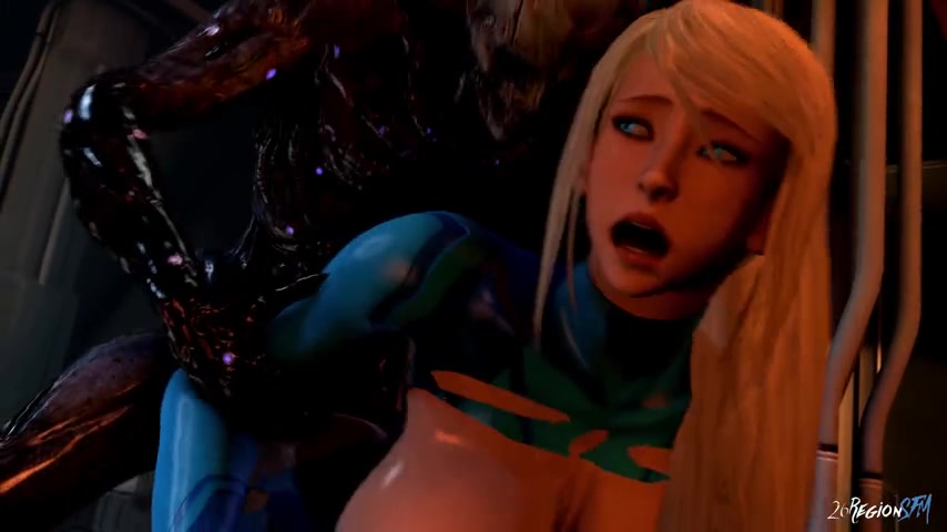 Samus gives a alien Demon a blowjob to a Demon with a dick so big she can barely fit it in her mouth, the Demon gives her a helping hand by pushing her head down. Standing against a table the Demon takes her from behind, fucking her asshole over & over while her giant tits flapping around. Samus now on the floor gets her pussy penetrated by the Demon as he thrusts hard into her, Samus moaning & loving every second of it barely able to take all his dicking. The Demon now has Samus standing sideways with one leg up in the air over his shoulder as he fucks her pussy Later Samus is now completely topless, the Demon begins Samus standing with deep hard thrusts causing her stomach to bulge all the while he tightens his grip around her neck, lightly choking her. Both now outside, Samus now completely naked fucks the Demon cowgirl style, his long dick bulging her stomach back & forth much deeper than before. Samus can barely take it, the Demon then cums inside her pussy, he removes his dick & the cum pours out of her pussy down her front. Samus not quite finished with the Demon fucks him reverse cowgirl in the ass, doing all the work as she thrusts her ass & hips up & down his big giant dick. To finish off, the Demon gets Samus to kneel on the floor, she stick out her our tongue as he strokes his big giant dick until he cums all over her face & tits.